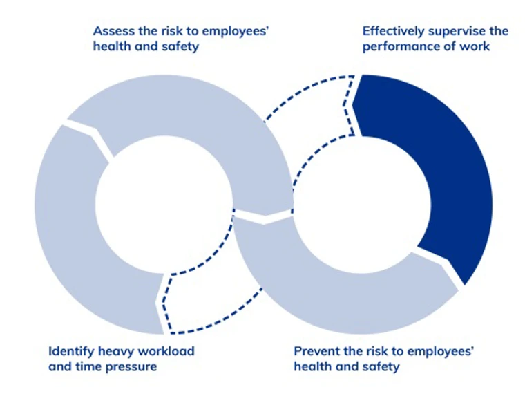 As an employer, you have a duty to conduct effective supervision to ensure that the performance of the work is health and safety compliant in regard to the high emotional demands when working with people. Your supervisors must ensure that the measures put in place to promote health and safety are working as intended.