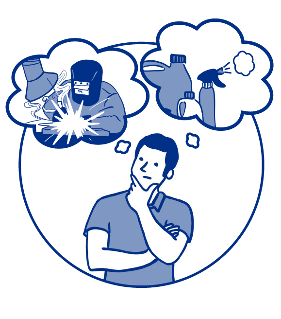 I skal vurdere alle arbejdsprocesser, hvor I enten bruger farlig kemi i produktform, eller hvor der kan udvikles farlig kemi i forbindelse med arbejdet, fx røg, dampe, gasser eller støv.