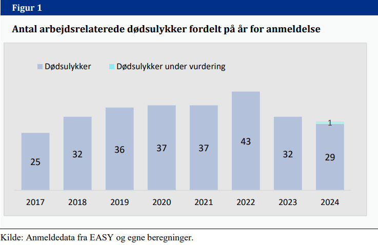 Arbejdstilsynet har nu færdigopgjort vurderingen og optællingen af arbejdsrelaterede dødsulykker i 2024. Optællingen viser, at der sidste år er anmeldt højst 30 dødsulykker.